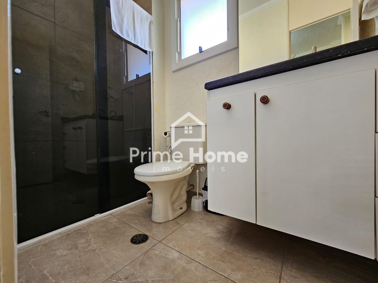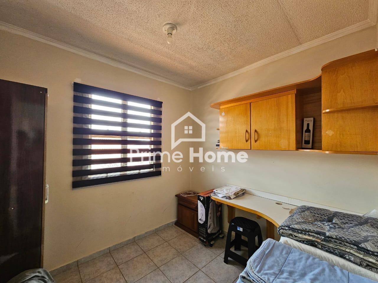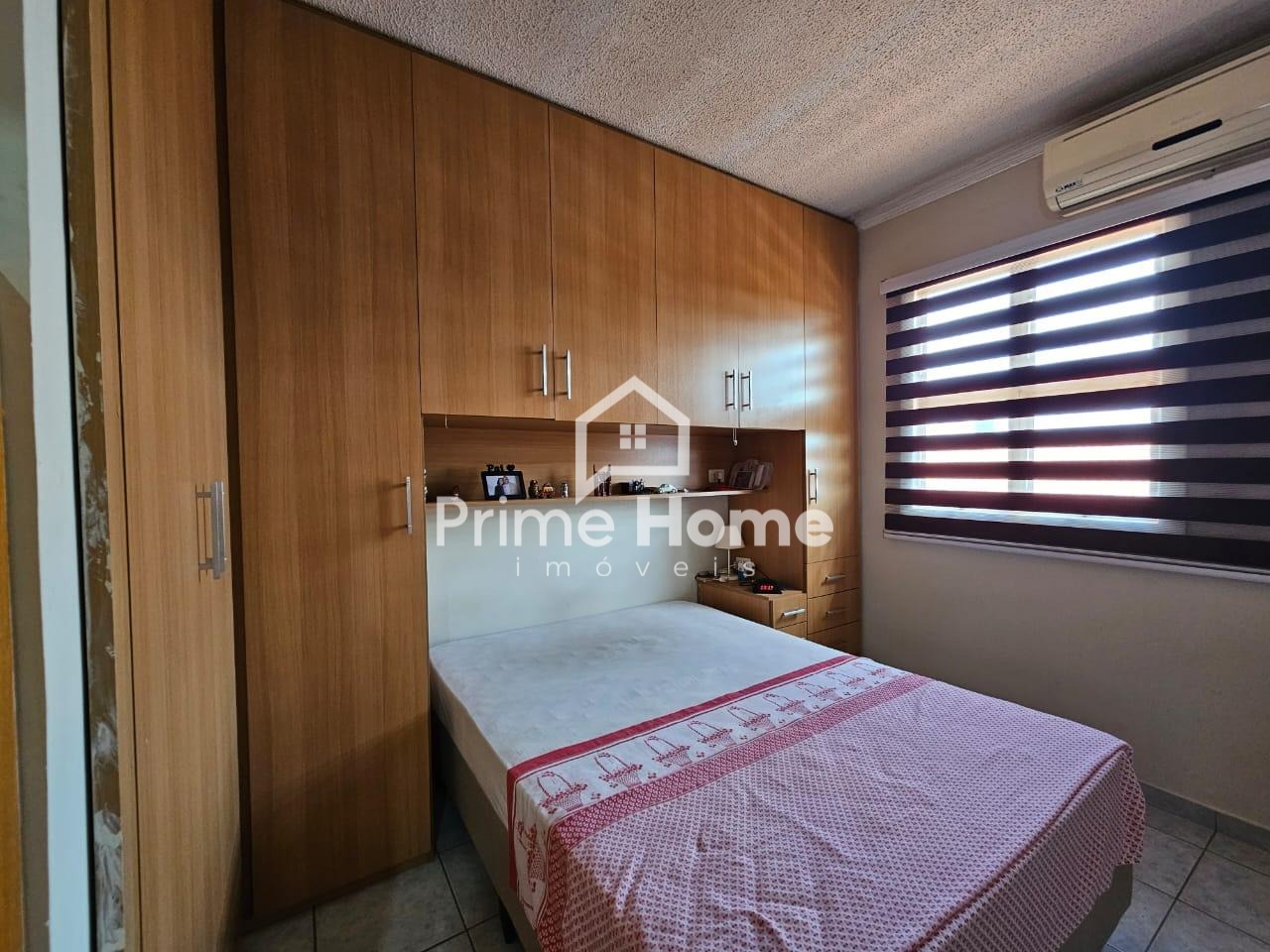 O primeiro dormitório conta com guarda-roupa planejado de grande porte, sapateira e ar-condicionado. O segundo dormitório possui guarda-roupa planejado e ar-condicionado. O terceiro dormitório está configurado como escritório, com armário e mesa planejados. O banheiro é equipado com pia com gabinete planejado, chuveiro, box e vaso sanitário. O imóvel ainda dispõe de despensa fechada sob a escada, entrada lateral independente para o quintal com portão e garagem coberta.