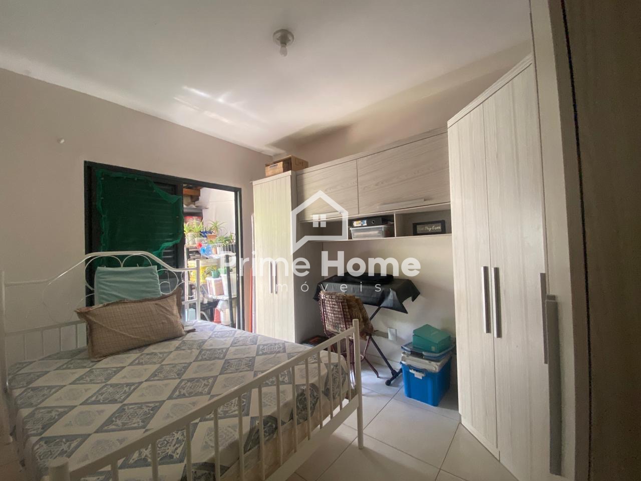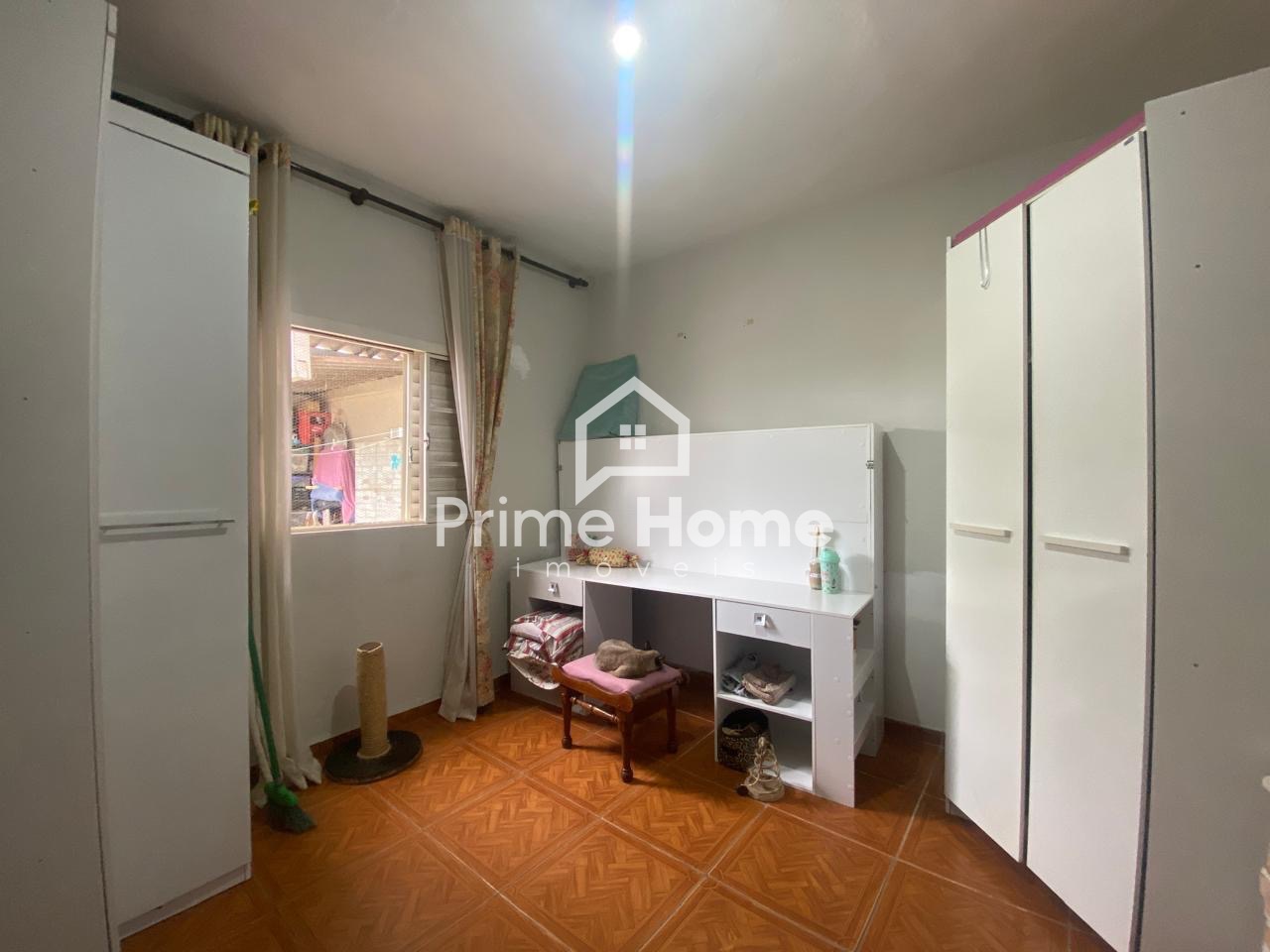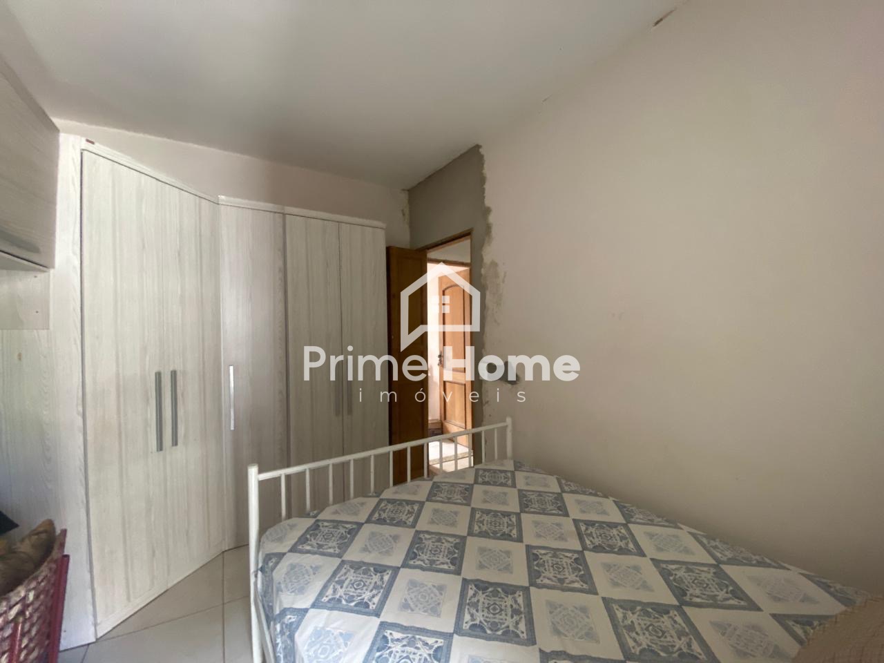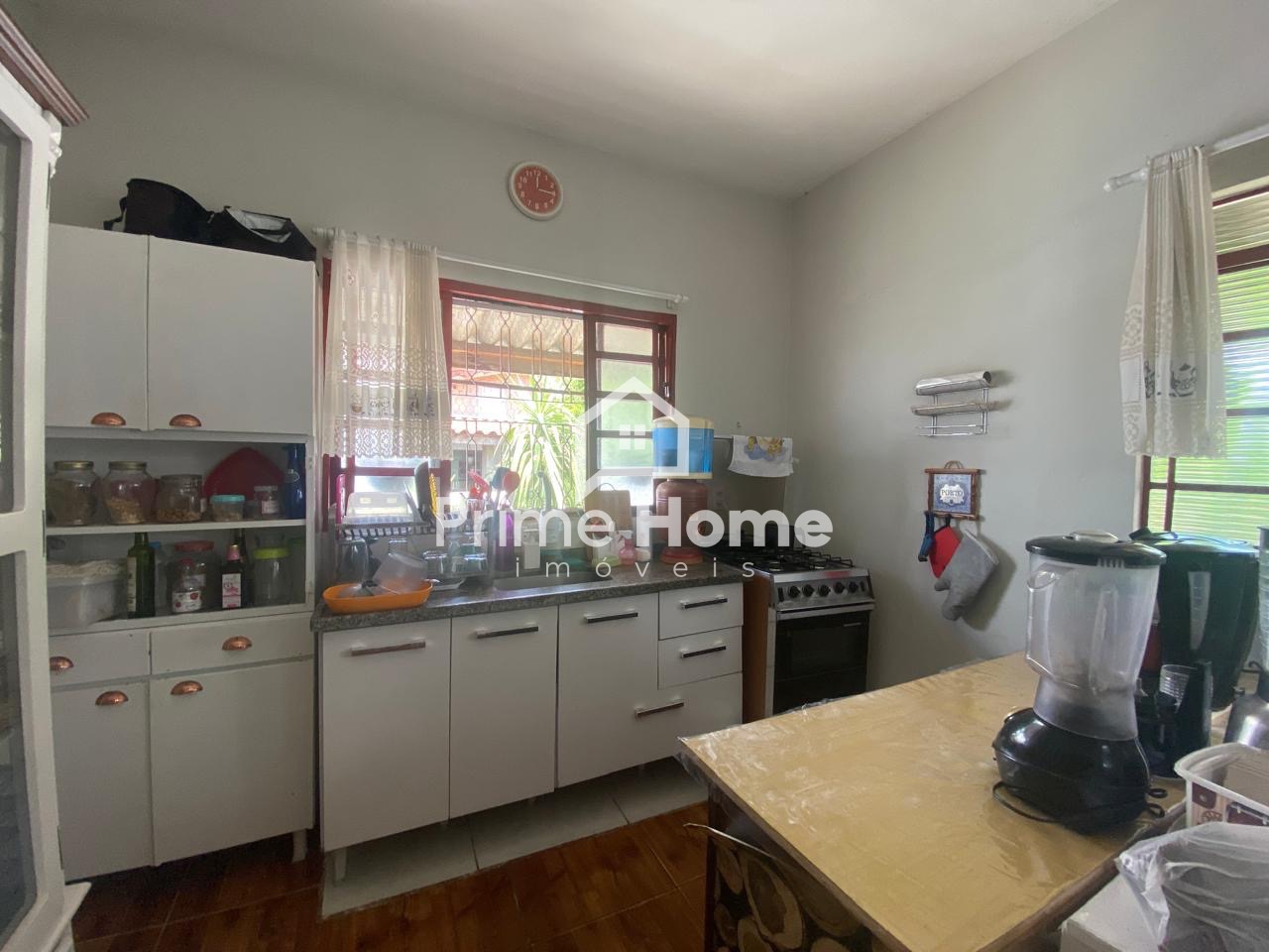 A casa principal dispõe de sala e cozinha integradas, 2 dormitórios, sendo um deles com porta-balcão com acesso ao quintal, além de banheiro social. Todo o imóvel possui piso em porcelanato.