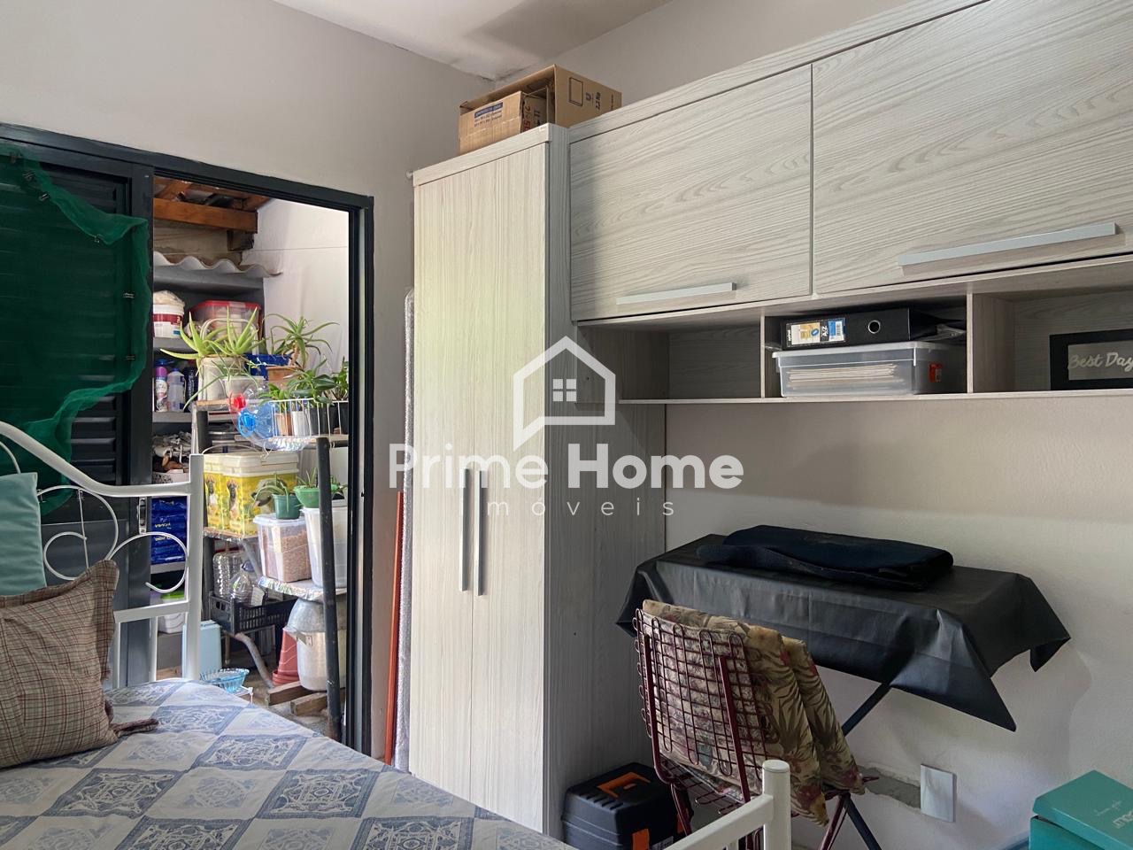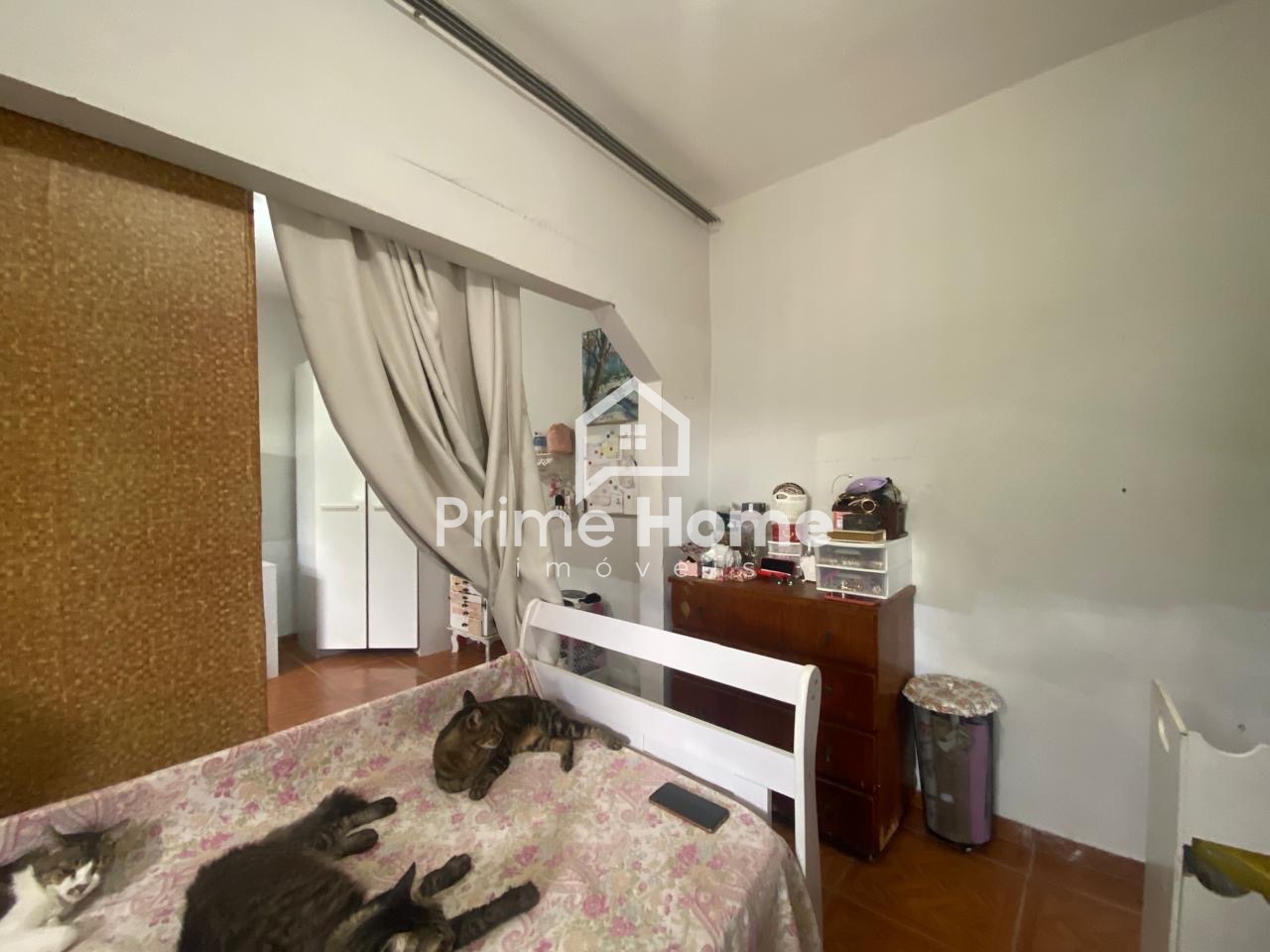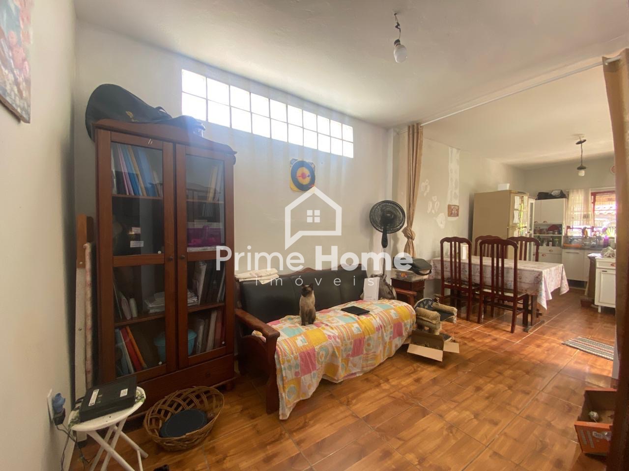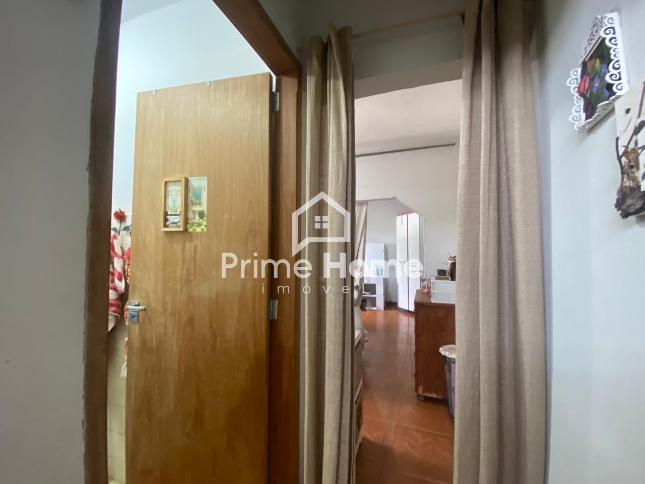 A casa principal dispõe de sala e cozinha integradas, 2 dormitórios, sendo um deles com porta-balcão com acesso ao quintal, além de banheiro social. Todo o imóvel possui piso em porcelanato.