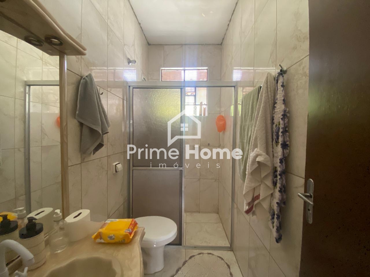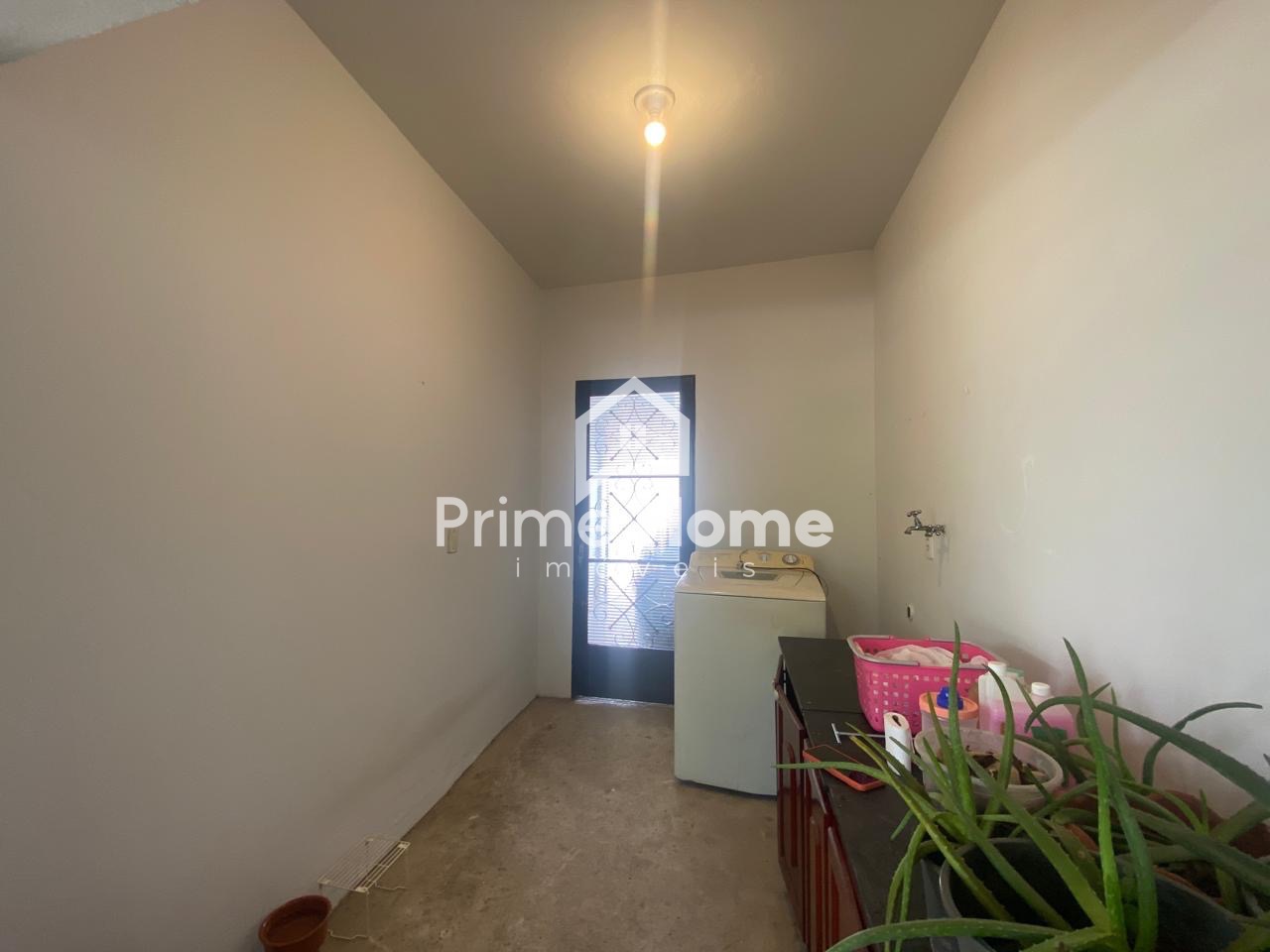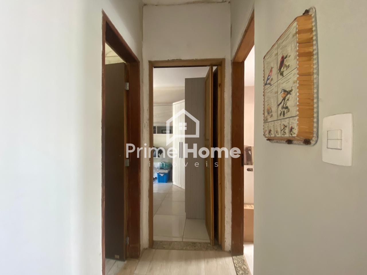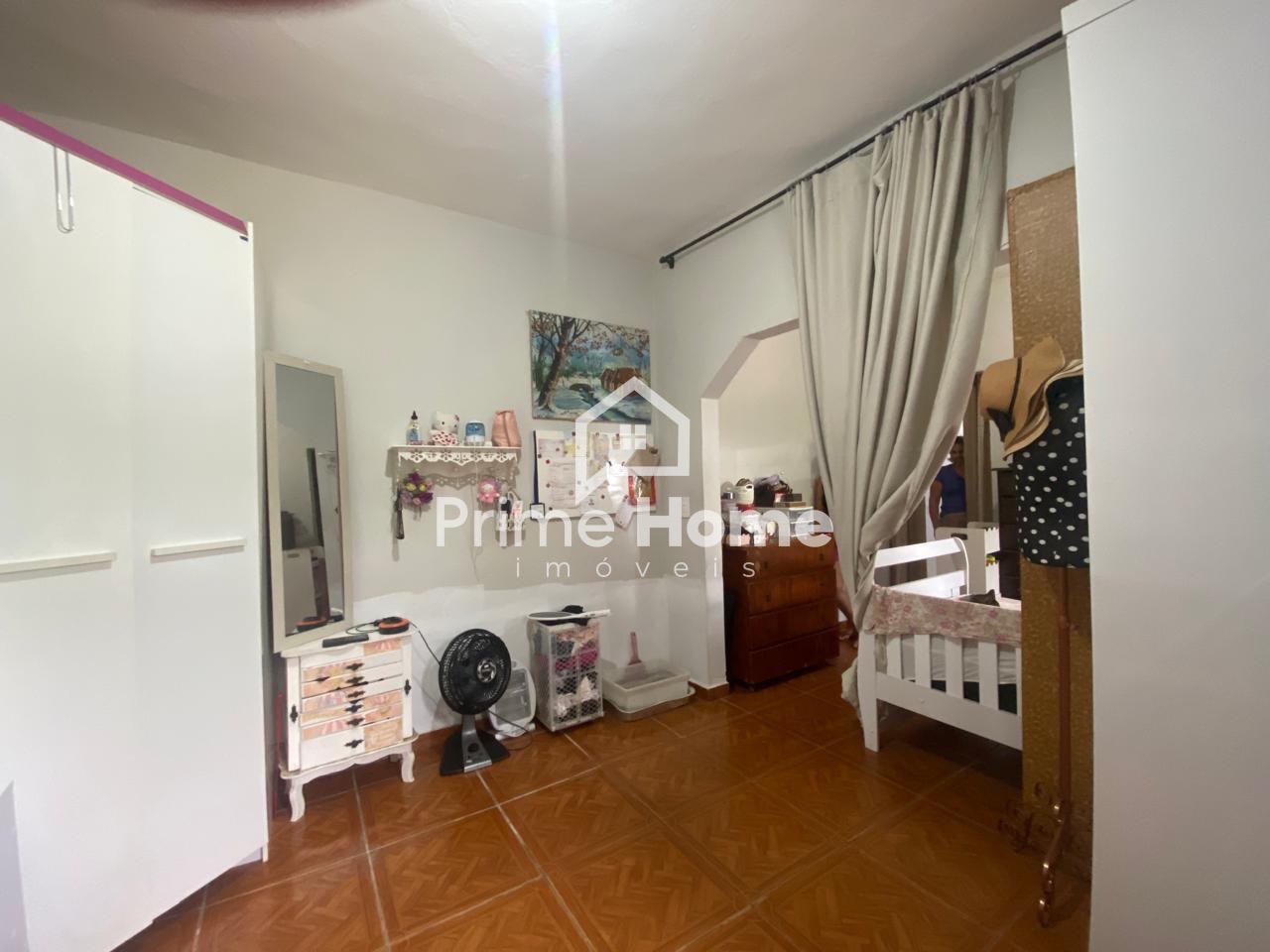 A casa principal dispõe de sala e cozinha integradas, 2 dormitórios, sendo um deles com porta-balcão com acesso ao quintal, além de banheiro social. Todo o imóvel possui piso em porcelanato.