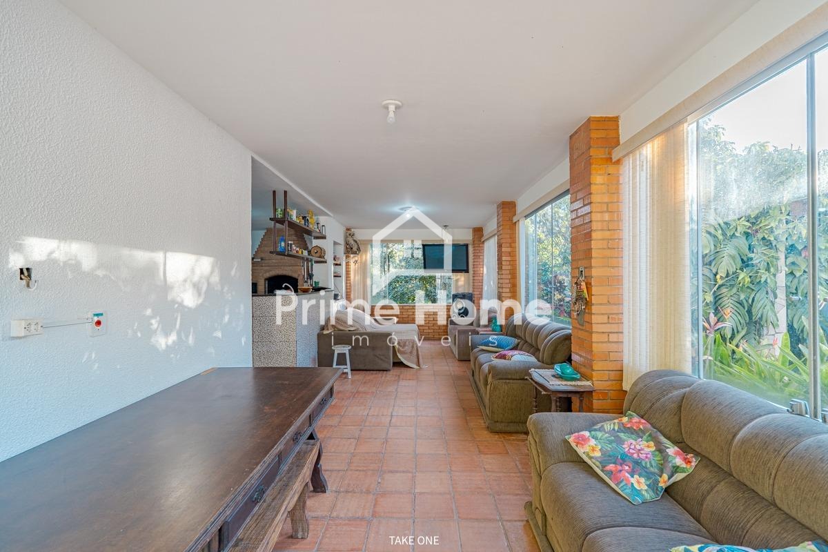 Na área externa, o destaque fica por conta do lazer completo: churrasqueira, piscina e um amplo quintal com muito verde, proporcionando momentos únicos de descanso e convivência. A propriedade também dispõe de casa de caseiro independente e garagem com espaço para vários veículos.