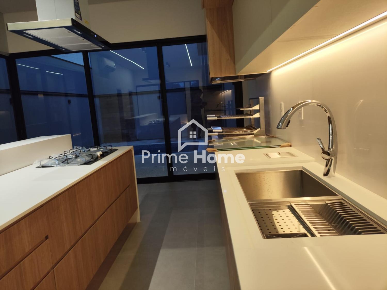 O imóvel conta com sala de estar com lavabo, proporcionando um espaço aconchegante e funcional. A cozinha é planejada, com ilha e cooktop, integrada aos ambientes, garantindo praticidade no dia a dia. Possui ainda área de serviço bem distribuída.