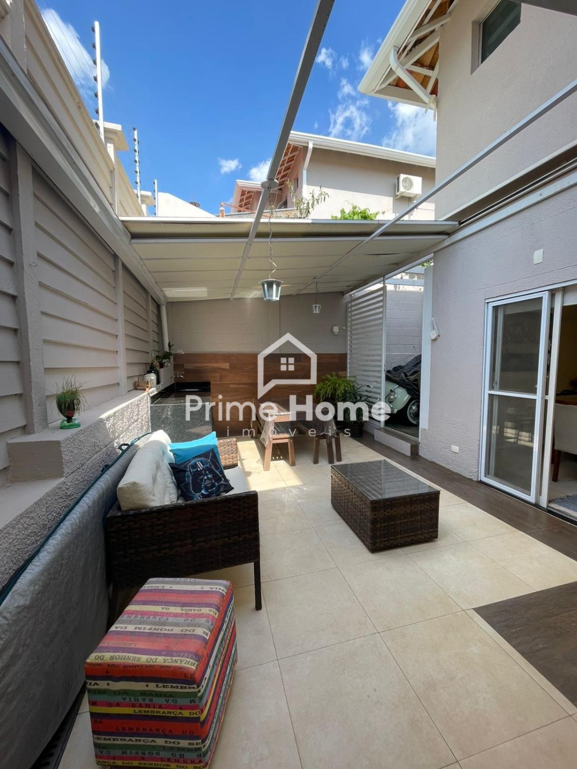 Sobrado com 3 dormitórios sendo 1 suíte, todos com armários, banheiro social, sala de estar e jantar, lavabo, escritório, cozinha planejada e pia em granito, varanda, quintal, ar-condicionado, varanda gourmet com espaço coberto com teto removível, dando entrada de luz, durante suas confraternizaçoes.
