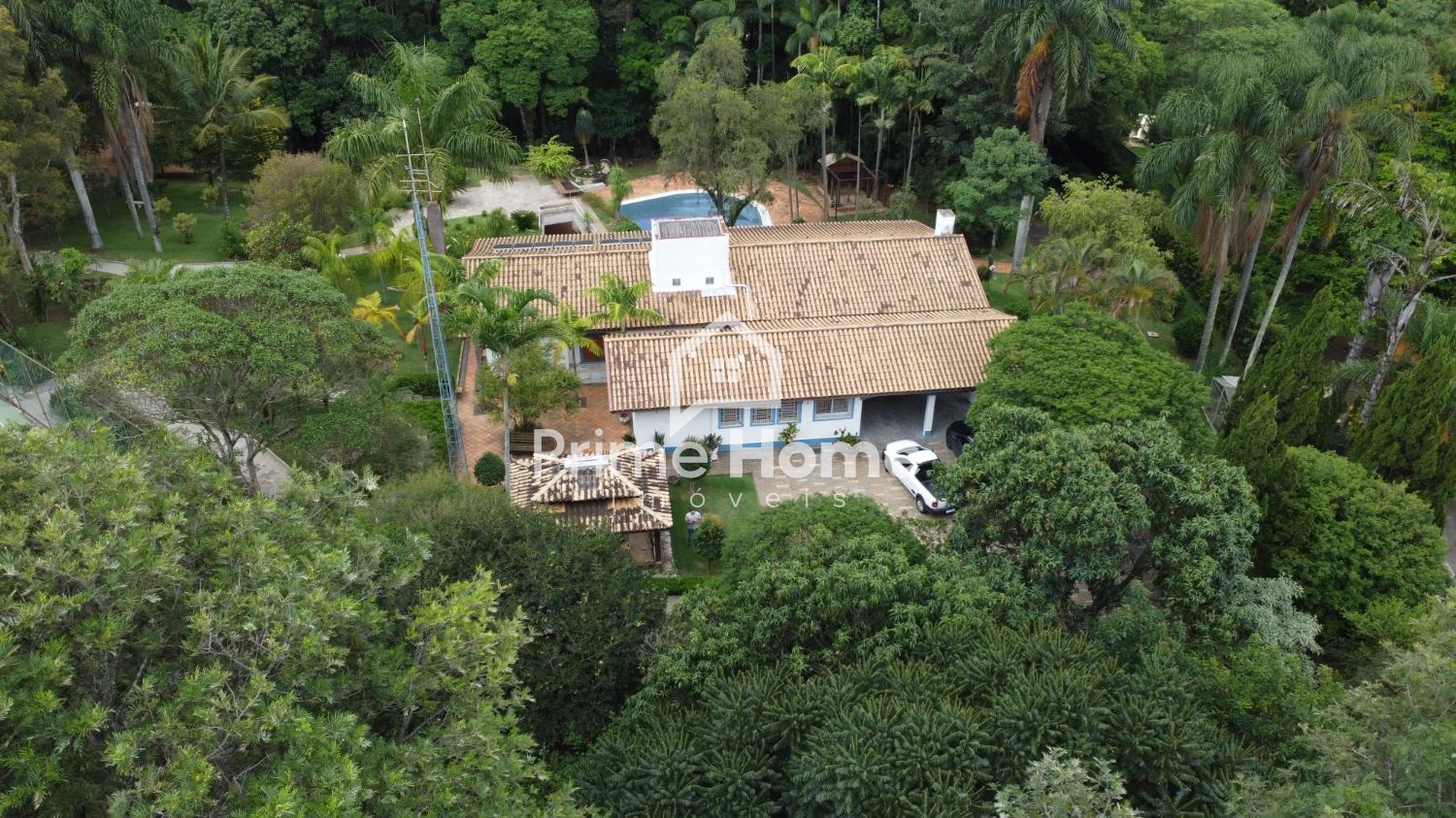 A chácara possui um área bem arborizada, casa para caseiro, casa principal com 4 suítes, lazer com piscina, quadra de esporte, quiosque com churrasqueiras e diversos espaços para descansos.