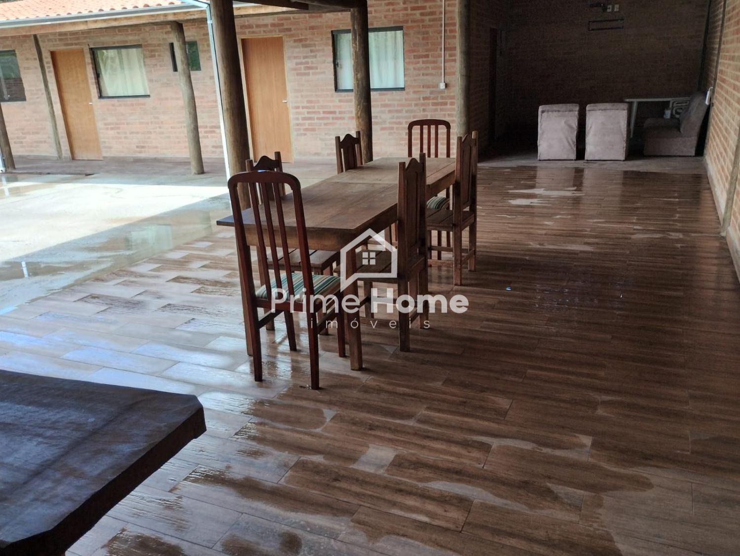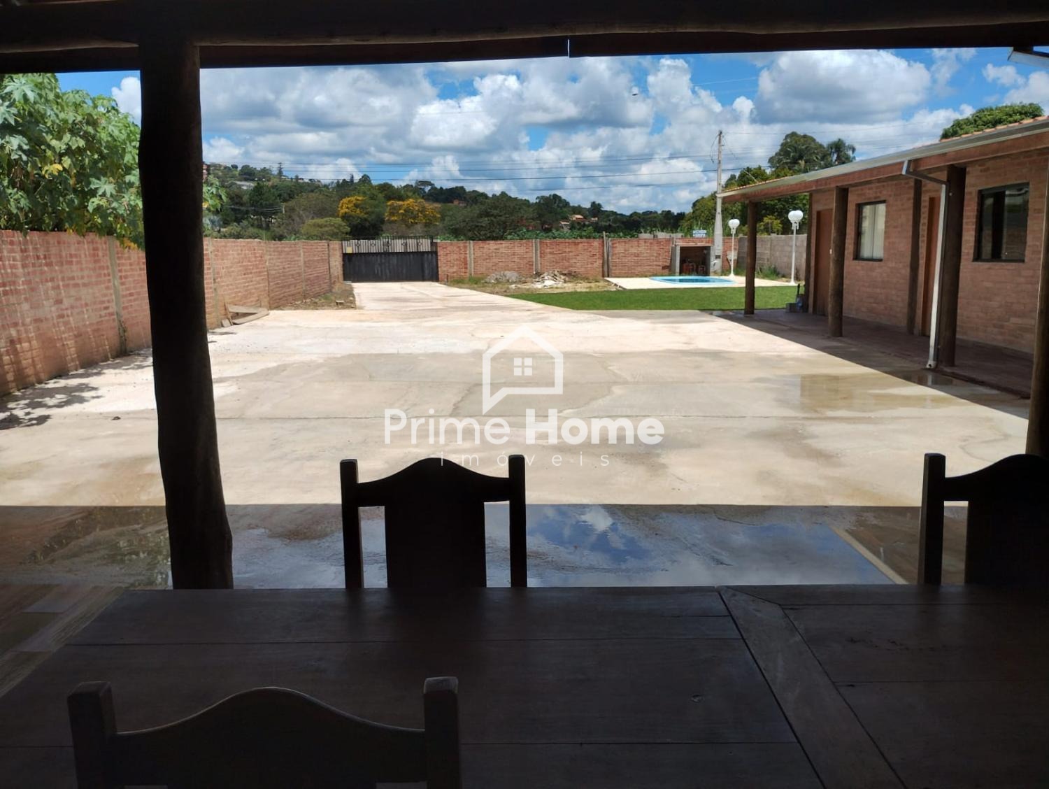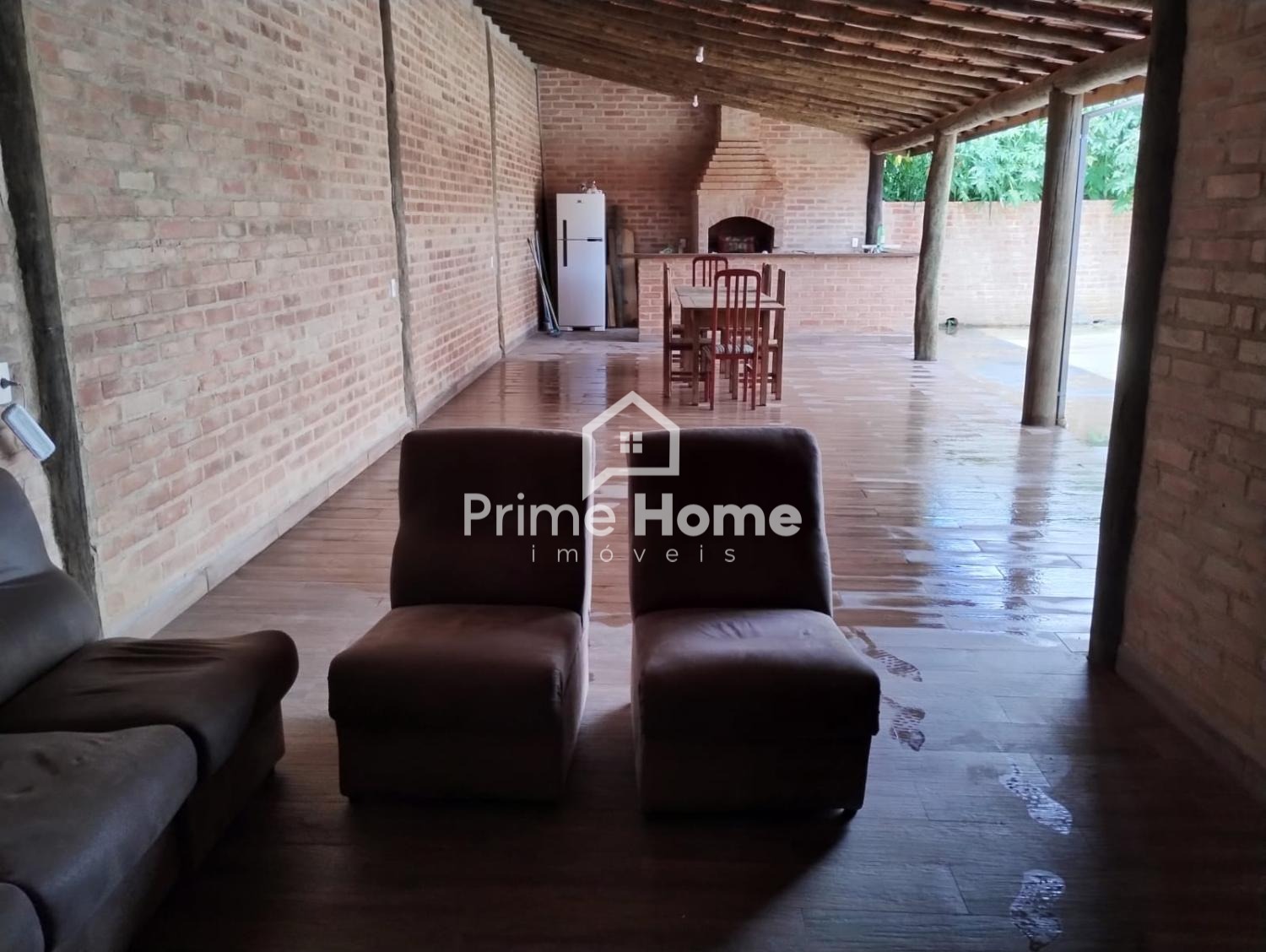 A chácara conta com 4 dormitórios, sendo 3 suítes, sala de TV, cozinha caipira, área de lazer coberta com churrasqueira e piscina. A construção é em tijolinho aparente, com estrutura de eucalipto tratado, garantindo charme e durabilidade.