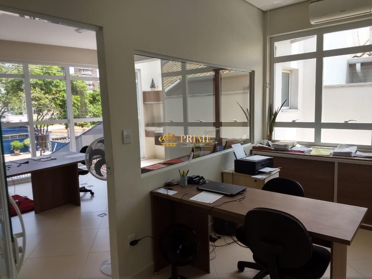 Ótimo prédio com aproximadamente 780m² de construção em terreno com 418m², sendo área de recepção e amplo espaço para trabalho ou vagas, piso superior com ampla sala, divisórias em vidro, proporcionando um ótimo visual, área de refeitório, ao todo são 11 ar condicionados.