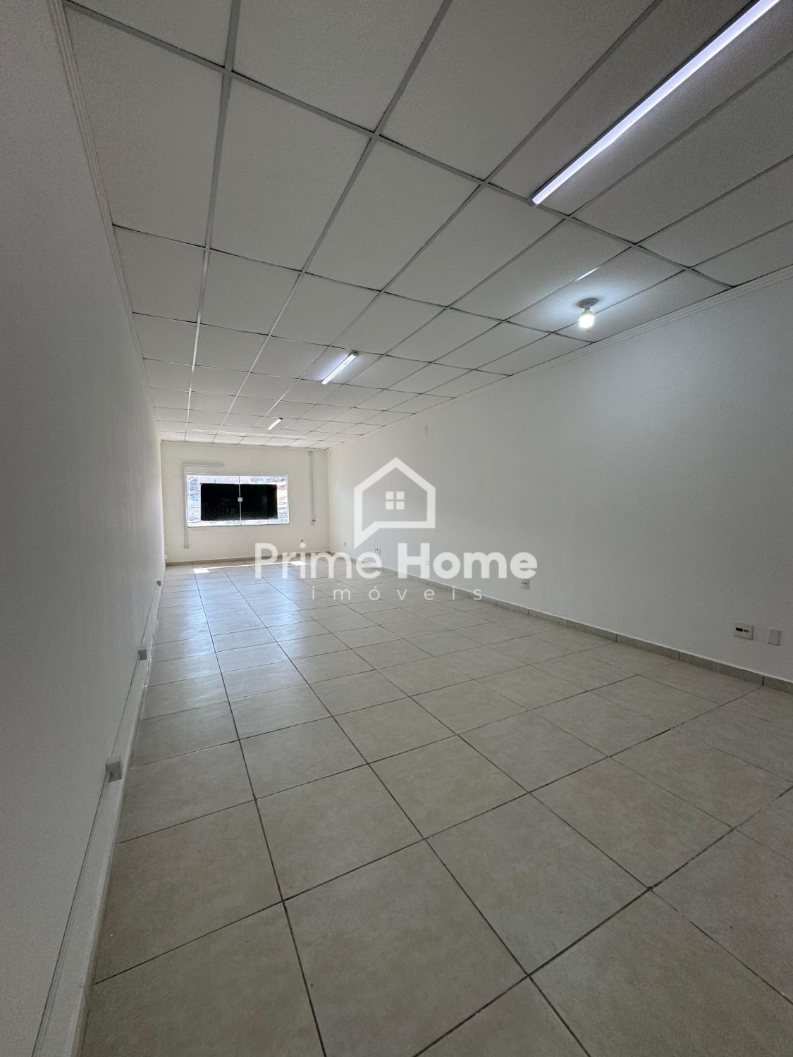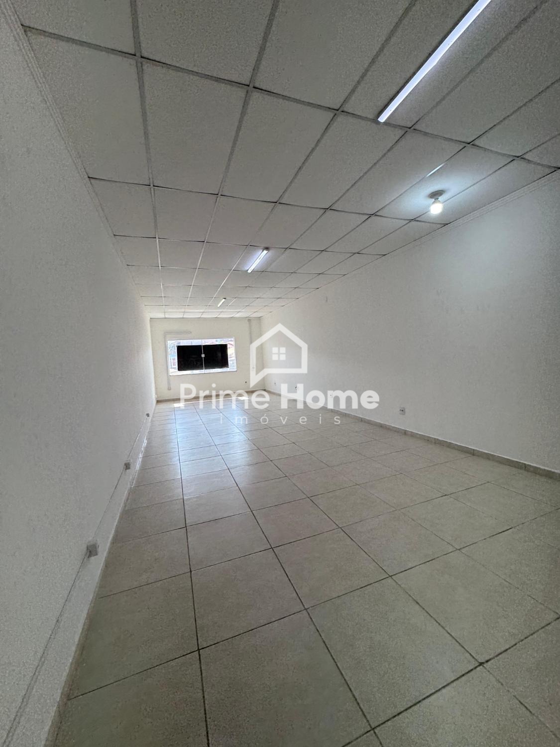 Salão recém construído de 56m² no piso superior, 2 banheiros e piso em porcelanato.