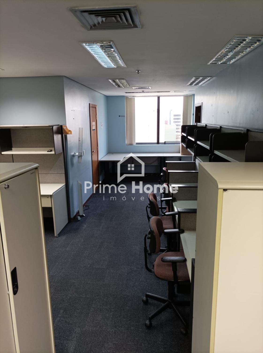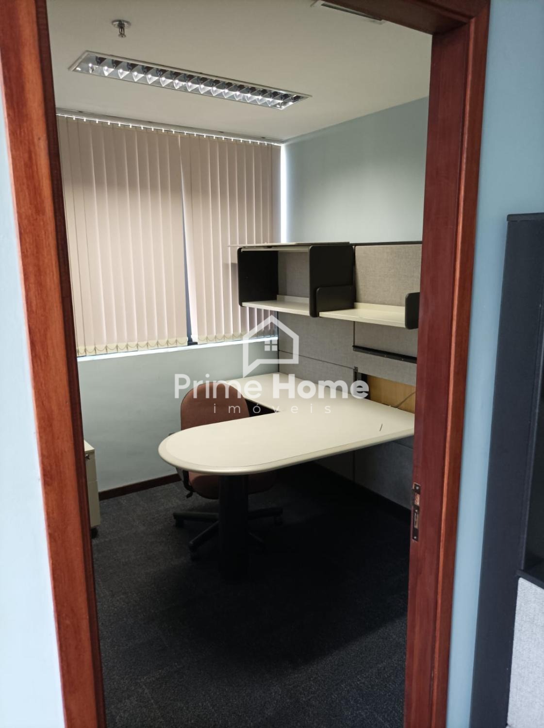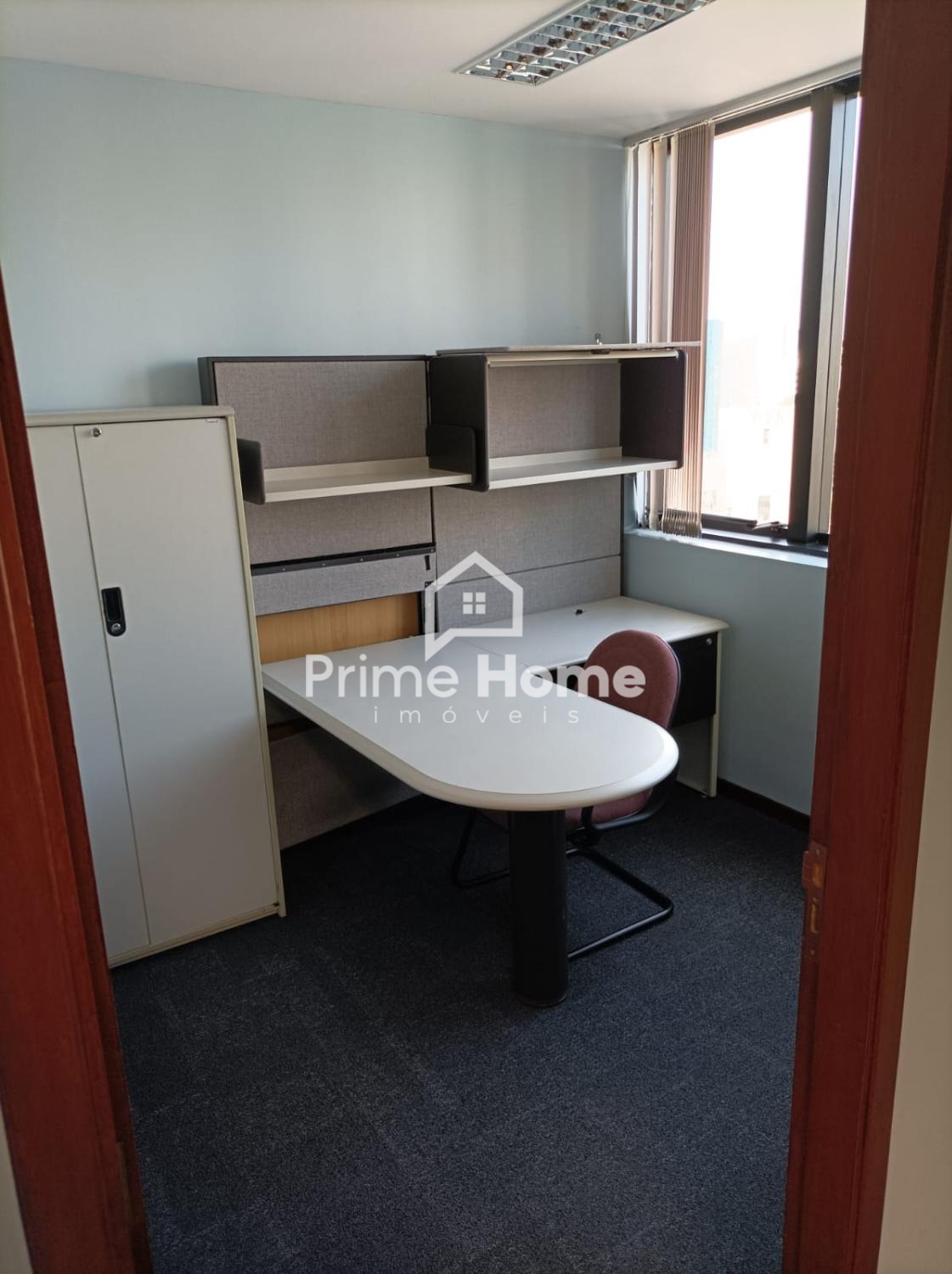 Sala comercial de alto padrão, com estação de trabalho, cadeiras, mesas planejadas em todas as salas, rica em armários, 3 banheiros, servidor e 2 vagas de garagem.