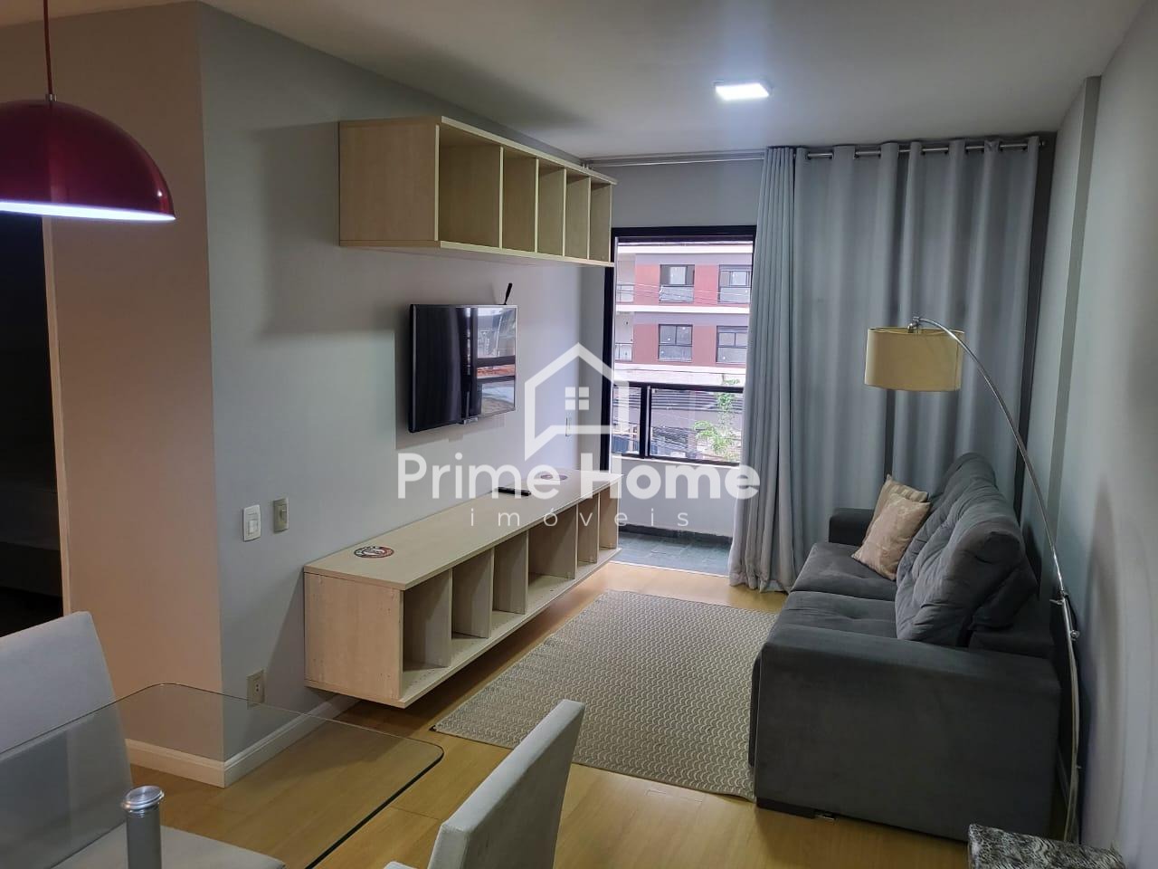 Apartamento mobiliado, sendo sala de 2 ambientes com sacada, cozinha planejada, área de serviço, 2 banheiros, dormitório e 1 vaga.